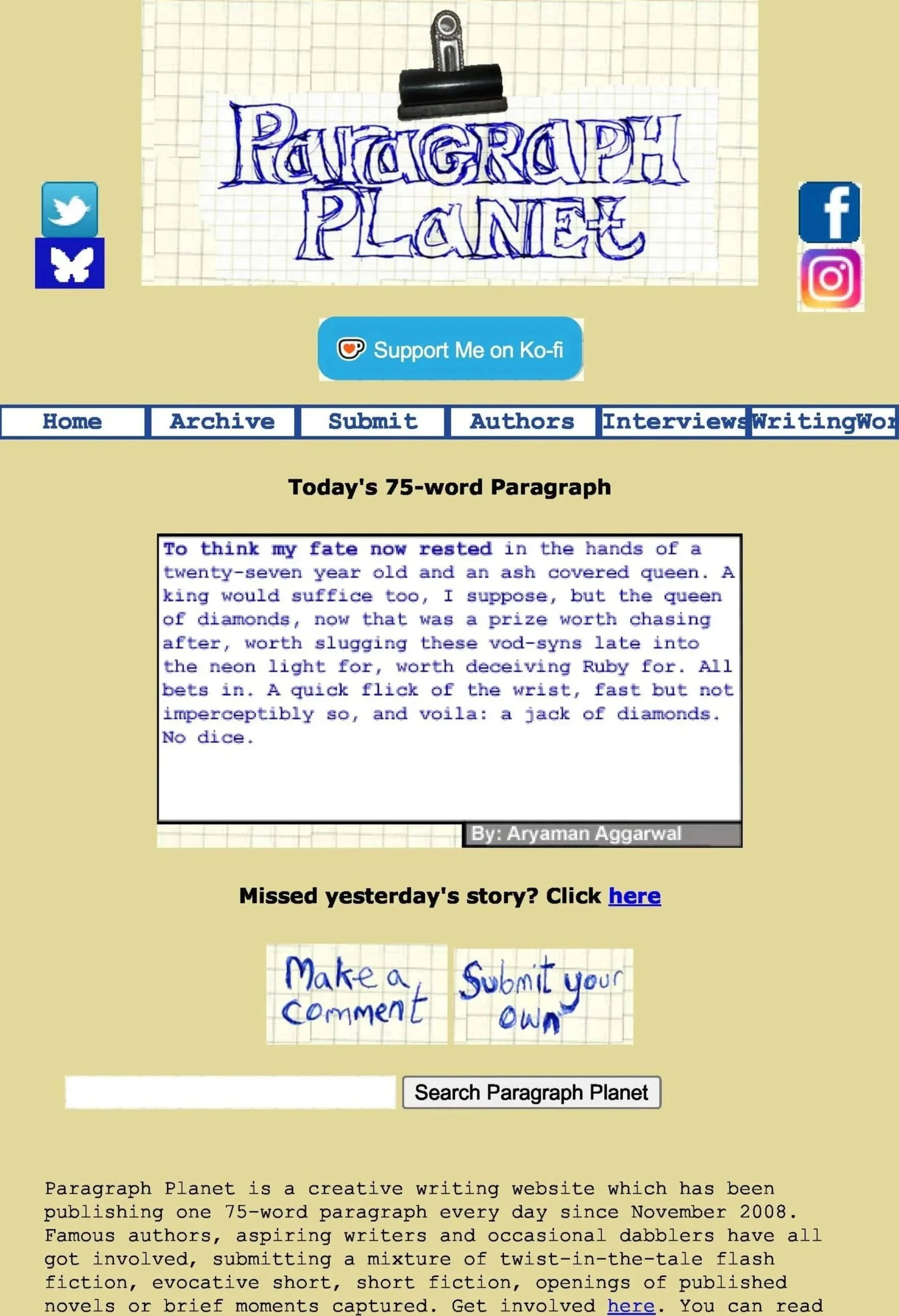 Paragraph Planet is a charming corner of the internet where an entire story unfolds within a single paragraph, and I am proud to contribute to it as the November 12th, 2025 edition: